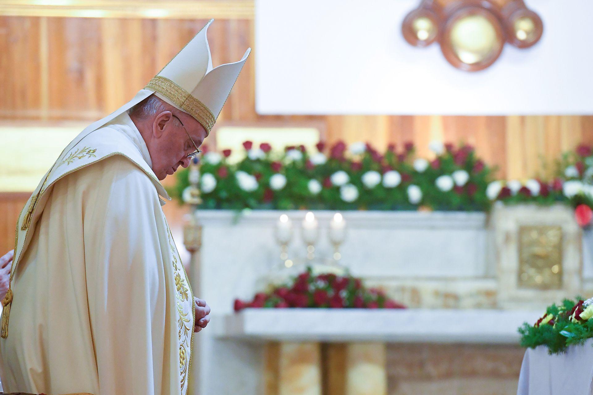 母亲啊,你的眼泪感动了我们的铁石心肠。愿你为我们留下的眼泪,使因我们的仇恨而干涸的山谷再次繁荣起来。当武器的喧嚣仍不沉寂时,愿你的祈祷使我们走向和平。愿你母亲般的双手抚摸所有在炸弹威吓下受苦和逃亡的人。愿你母亲般的怀抱安慰那些被迫离开自己家园和国家的人。愿你忧伤的心触动我们的同情心,敦促我们打开大门,关心受伤和被遗弃的人。