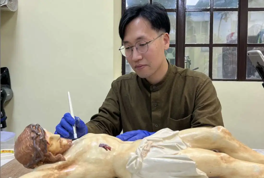 叶家祺说:“因高温和高湿度而损坏的文物通常需要专业处理。这些情况就需要请专业人士修复相关损毁物品。而祭衣、祭披等,便需要找专门制作祭衣的裁缝。”档案处的团队最近完成的修复是耶稣的圣像。叶家祺补充:“修复团队花了约三个月的时间来修复耶稣的圣像。”目前,档案处的档案员正着手修复存放在主教府的一批澳门教区前任主教的油画。