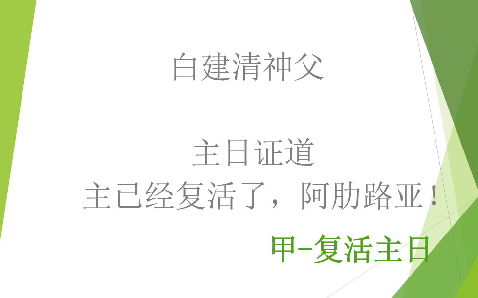 救主耶稣已经复活了,阿来路亚!当我们今天再一次庆祝两千年前主耶稣复活的历史事件时,就是参与了主耶稣的死亡与复活,分享祂带给了我们的救恩,更是跟随复活的主耶稣生活在我们时代和环境中。通过今天的读经和福音,随从圣教会的信德生活,我们在每天的生活中学习(1)认出复活的主、(2)成为复活的子民、(3)传扬同一的福音。