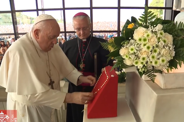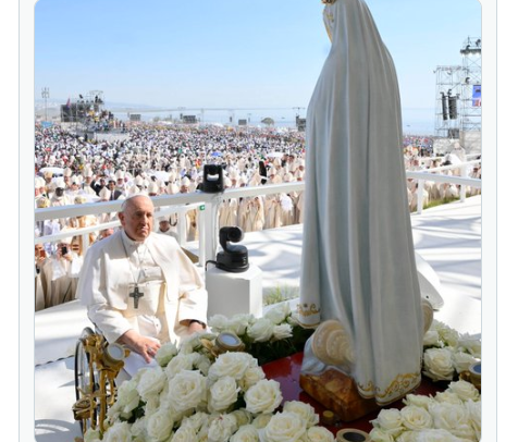 8、8月5日,教宗方济各前往法蒂玛圣母朝圣地。他与残疾青年一起诵念了玫瑰经,并将一束玫瑰花和一串金色念珠放在法蒂玛圣母像脚下。教宗说:“亲爱的兄弟姐妹们,今天让我们感受到圣母玛利亚的临在。母亲总是嘱咐我们‘按照耶稣的话去做。’ 她总是把我们引向耶稣。”