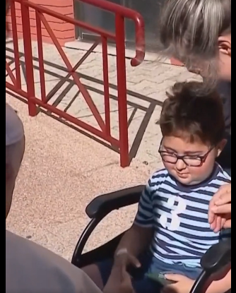 2、一段教宗方济各会见一名坐在轮椅上的儿童的视频,在里斯本俘获了记者们的心。图片中我们可以看到小男孩送给圣父礼物,然后两人互相击掌。
