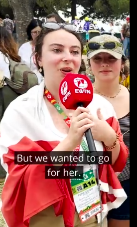 3、来自加拿大多伦多的两位姐妹:21岁的奥罗拉 (Aurora) 和23岁的格洛丽亚 (Gloria) 首次参加世青节。她们在新冠大流行开始之前就了解到世青节要在葡萄牙举办,当时她们的母亲鼓励两个女儿来参加这次国际盛典。不幸的是,母亲后来去世了,两位姐妹决定参加这次活动以纪念自己母亲。