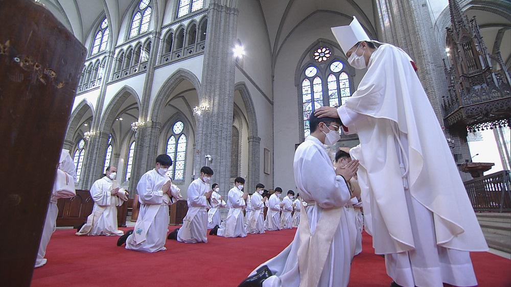 2月5日,廉洙政枢机在明洞大教堂主持隆重弥撒,祝圣了二十位新神父。整个仪式过程完全遵循新冠疫情防护规定。只有新神父的父母、堂区教友、辅理主教和其他一些神父在场参加。