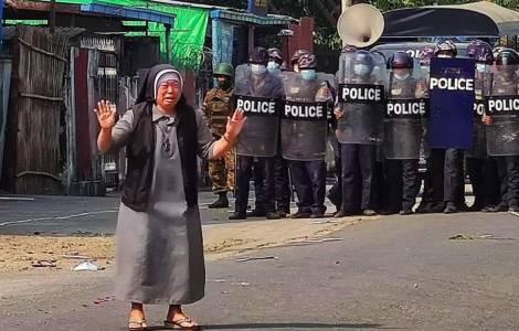 联合国报道,2月28日,缅甸警方向示威者开枪,全国共有18人被打死、30多人受伤。这其中发生了令人震撼和感动的一幕:密支那教区修会圣方济各沙勿略会安修女走上街头,跪求警方不要向和平抗议的青年示威者们开枪。