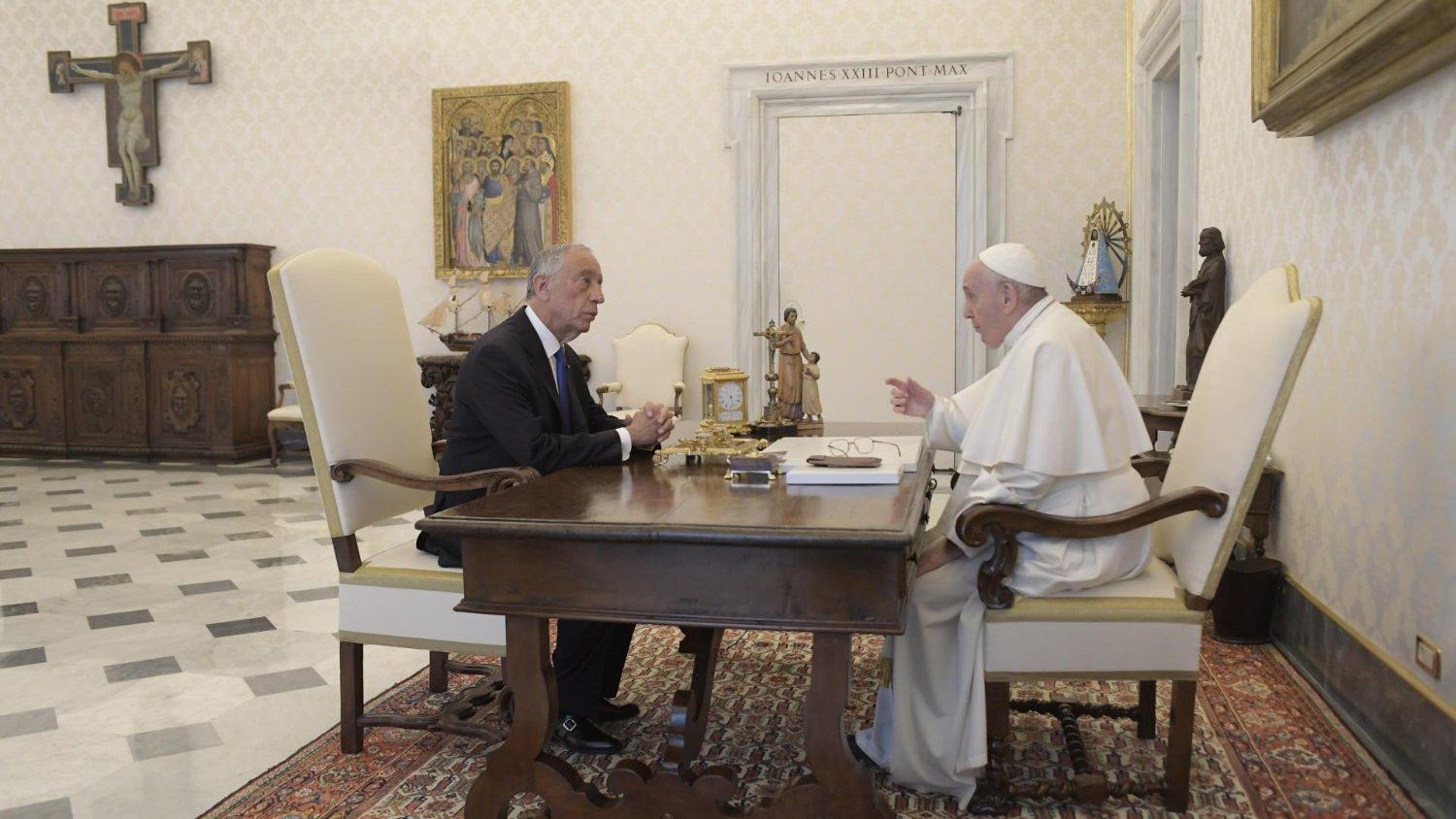教宗方济各于3月12日接见了葡萄牙总统德索萨,这是德索萨总统连任以来首次到国外访问。据《梵蒂冈新闻网》援引圣座新闻室消息称,双方在这次会晤中,对圣座与葡萄牙之间的良好关系,以及教会为葡萄牙社会生活作出的贡献表示满意,并特别提到教会在管理当前的卫生危机、维护生命及社会和睦共处方面的成绩。