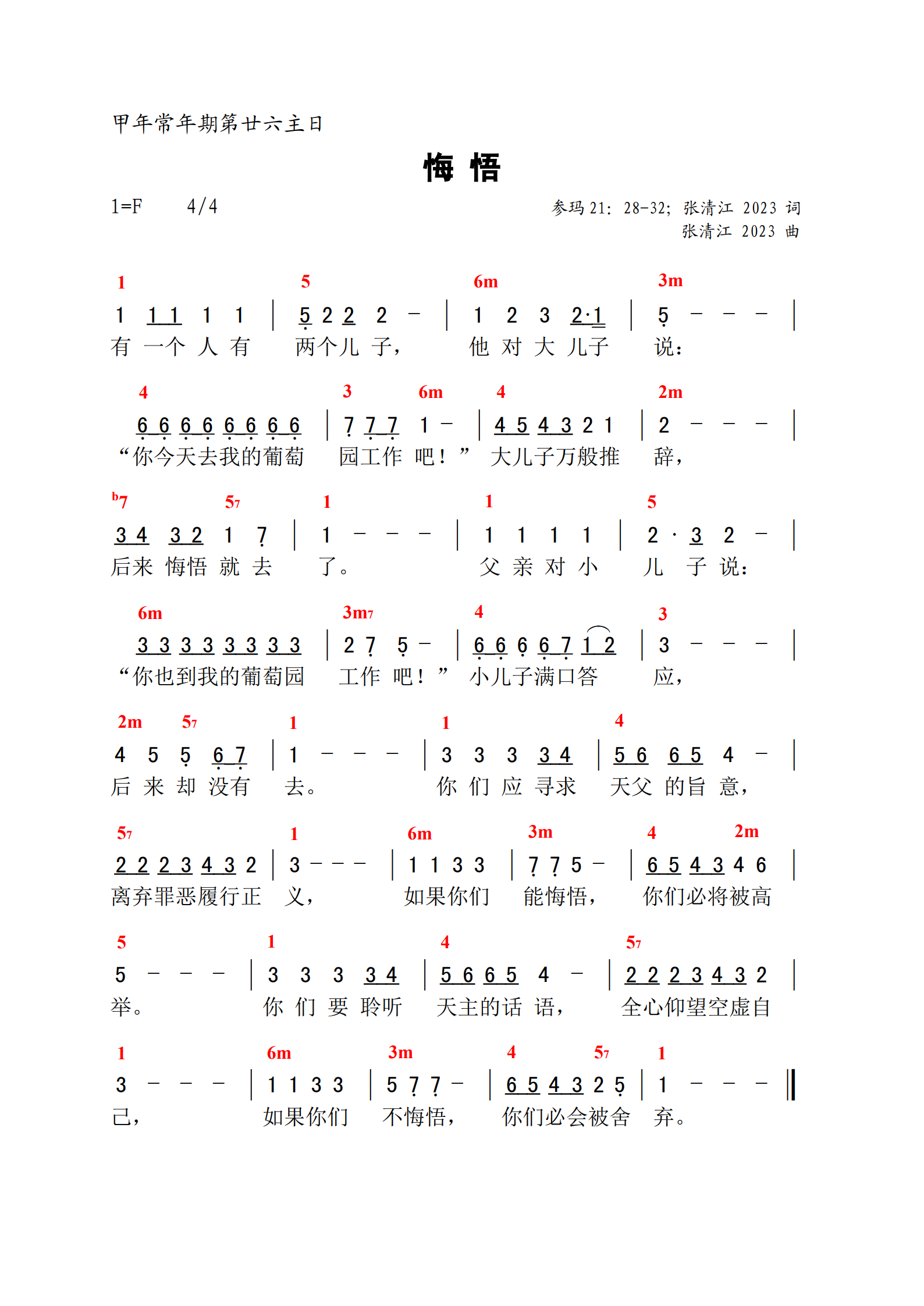【主日赞歌】| 悔悟——甲年常年期第26主日
