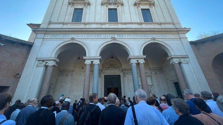 世界主教会议总发言人霍勒利希(Jean-Claude Hollerich)枢机也在圣巴斯弟盎大殿发言,提到罗马初期基督徒的生活,以及葬在地窟内的殉道者的见证。他说:“这次从圣伯多禄大殿出发的朝圣之旅,乃是朝向我们的现实、我们教会现实的一段旅程,其间总是有十字架的映像。我们主教们必须注视自己的十字架,说:上主,我爱祢,我要背起十字架跟随祢!”